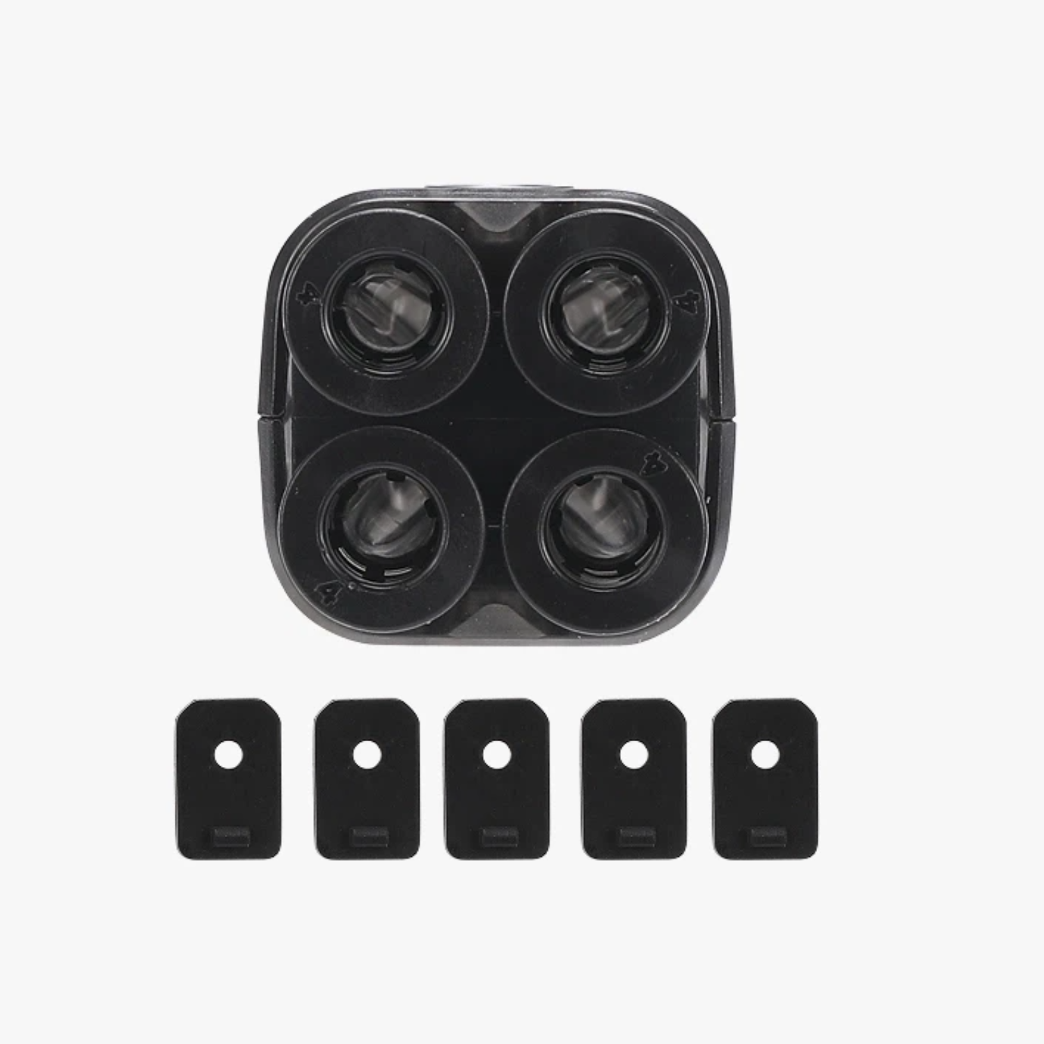 The cleaning pad for the filament line is installed at the outlet end of the four-in-one PTFE adapter. Its main function is to block the debris on the filament outlet on one side of the filament cleaning pad to prevent the debris from entering the toolhead and causing blockage or abnormal wireless communication.