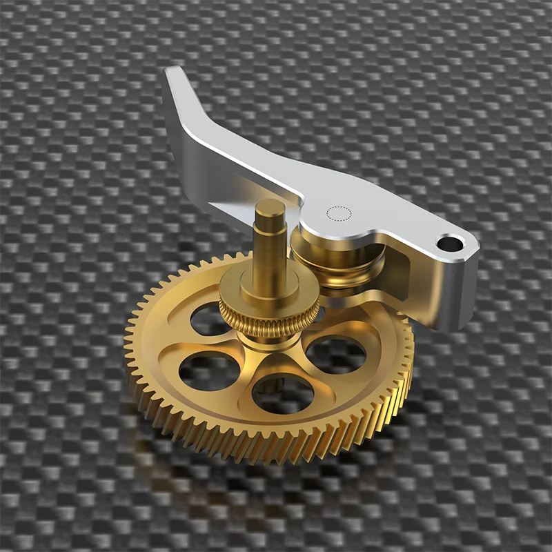 Material:Golden RNC Nano-Coated Hardened Steel Gear,Brass Spur Gear,AL 6061 T6 Aluminum CNC Idler Arm