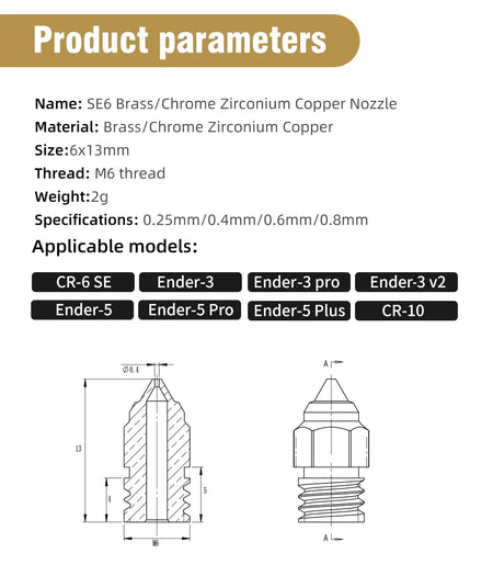 Product name:CR6-SE/Ender 3 S1/ Ender 5 Nozzle