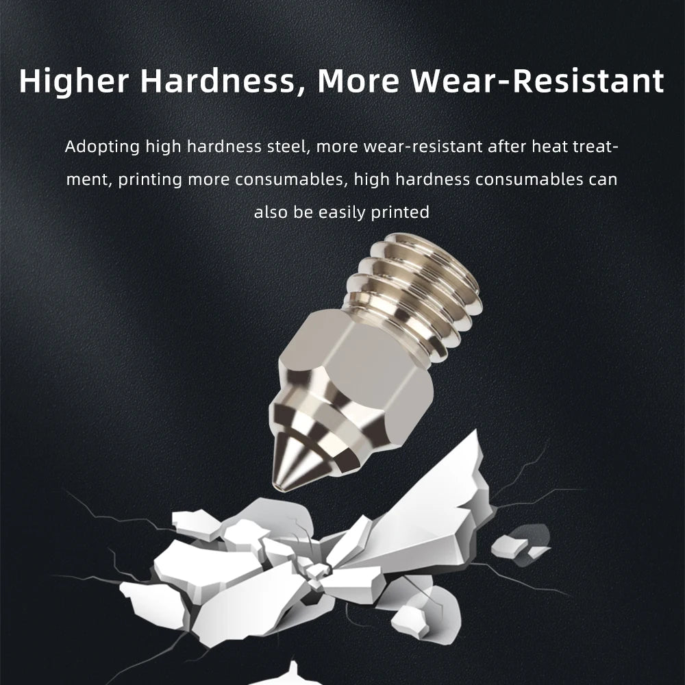 High temperature resistance up to 450 °C ensures rapid heating and continuous printing of high-temperature filament ,meeting more printing material needsCR6 SE Hardened Steel NozzleHard to reach a new peak