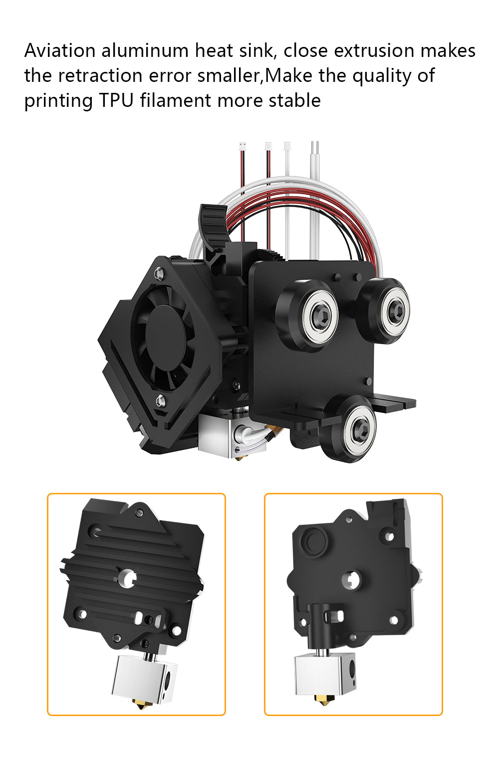 3. Disipador térmico de aluminio de aviación, extrusión de corto alcance hace que el error de retracción sea más pequeño y conveniente para imprimir filamento de TPU.