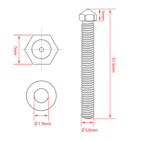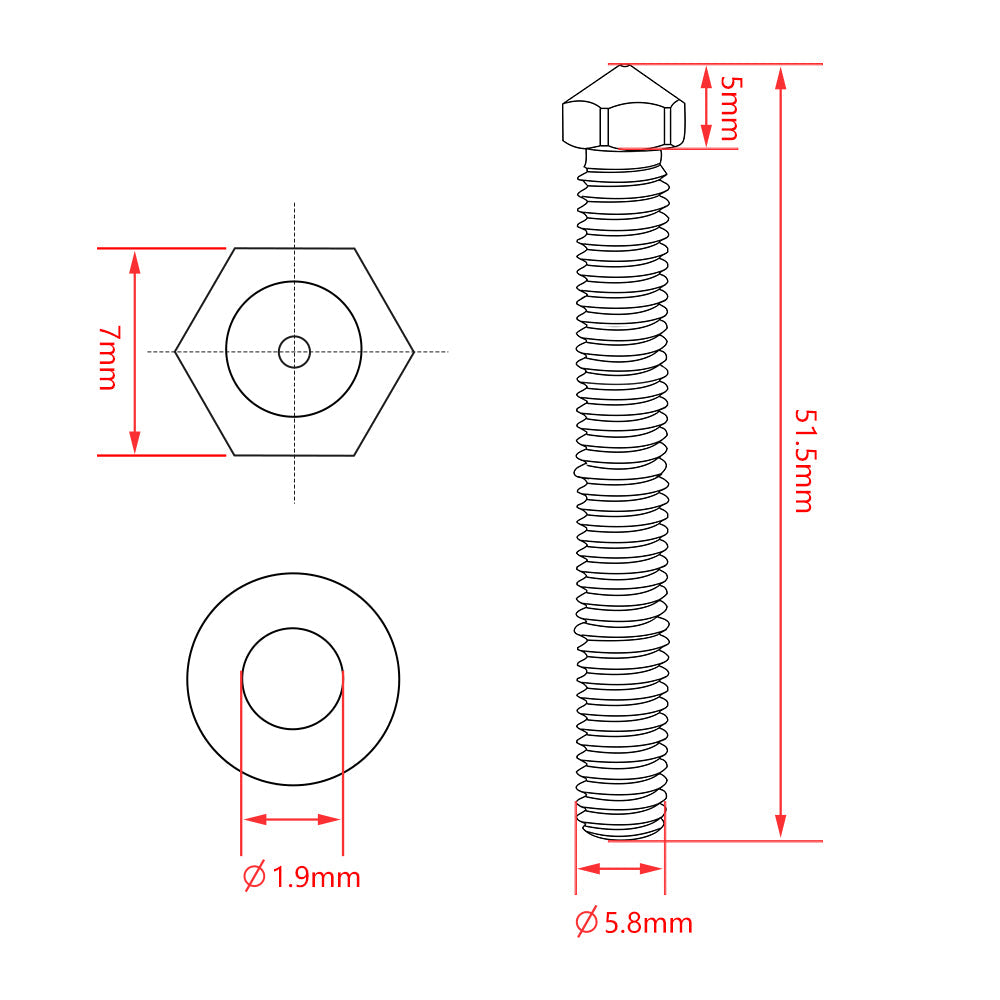 | Brass Nozzle | 105 | 3.0 | 300 | 18.0 | PLA, ABS, TPU, PA, PETG, etc. |