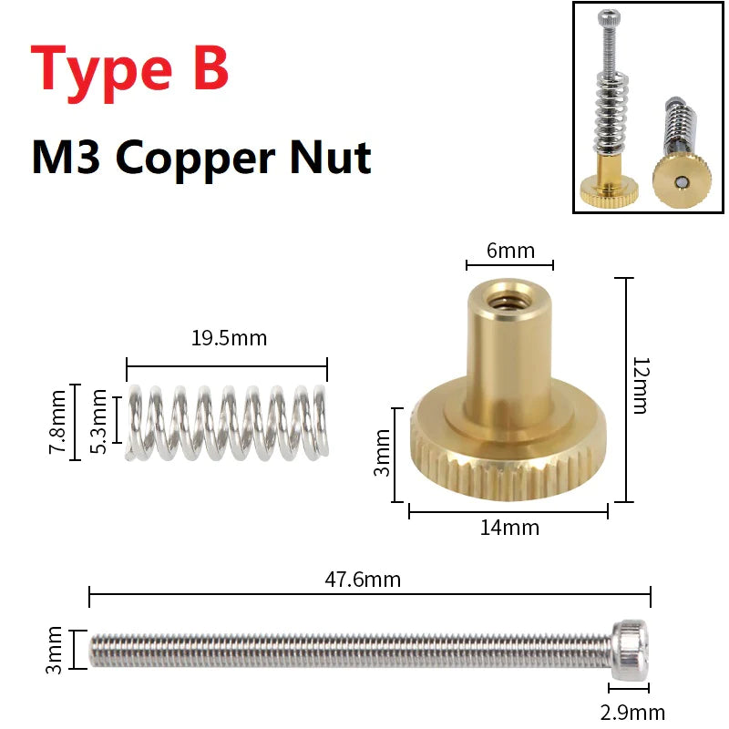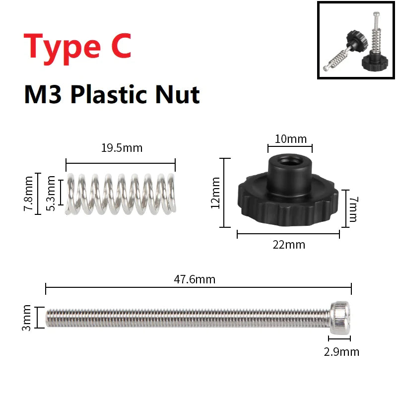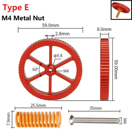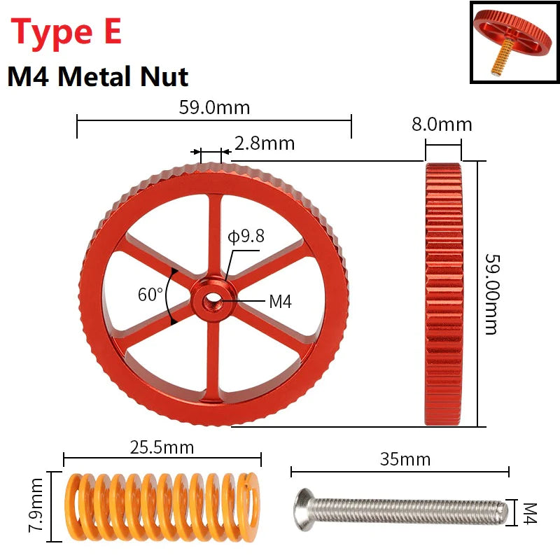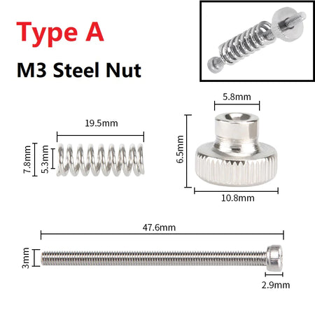 4 JUEGOS de tornillos M3/M4, tuercas, perilla de resorte de nivelación de cama térmica. Plataforma de impresión para impresoras 3D Accesorios de calibración de tornillos