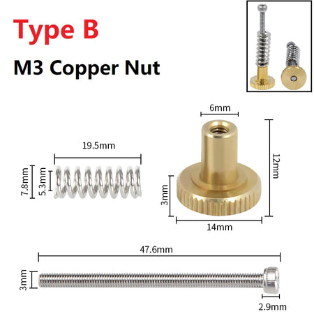 4 juegos de tornillos M3/M4, tuercas, perilla de resorte de nivelación de cama térmica