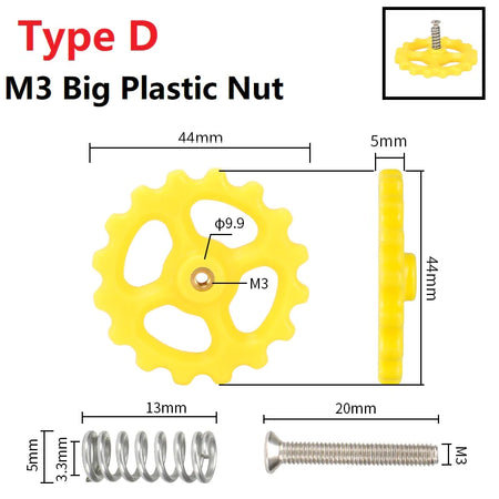 1 tuerca de plástico amarilla súper grande de ajuste M3 (D 44mm, H 5mm)