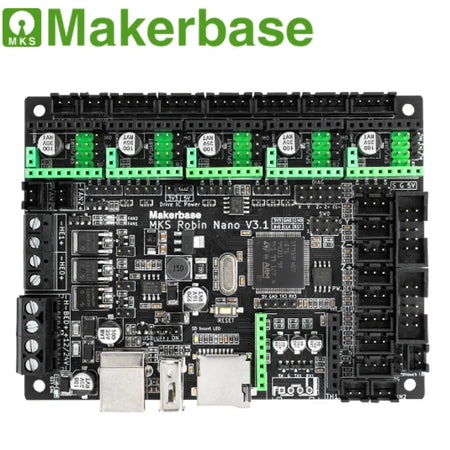 Robin Nano V3.1 is an upgraded version of Robin Nano V3.0, change the MCU from the STM32F407VGT6 toSTM32F407VET6. What is more, Robin Nano V3.1 improves the anti-interference performance, such as addingSchottky diodes to the temperature measurement circuit and MOs circuit, and adding TVS protection to the powerinput.