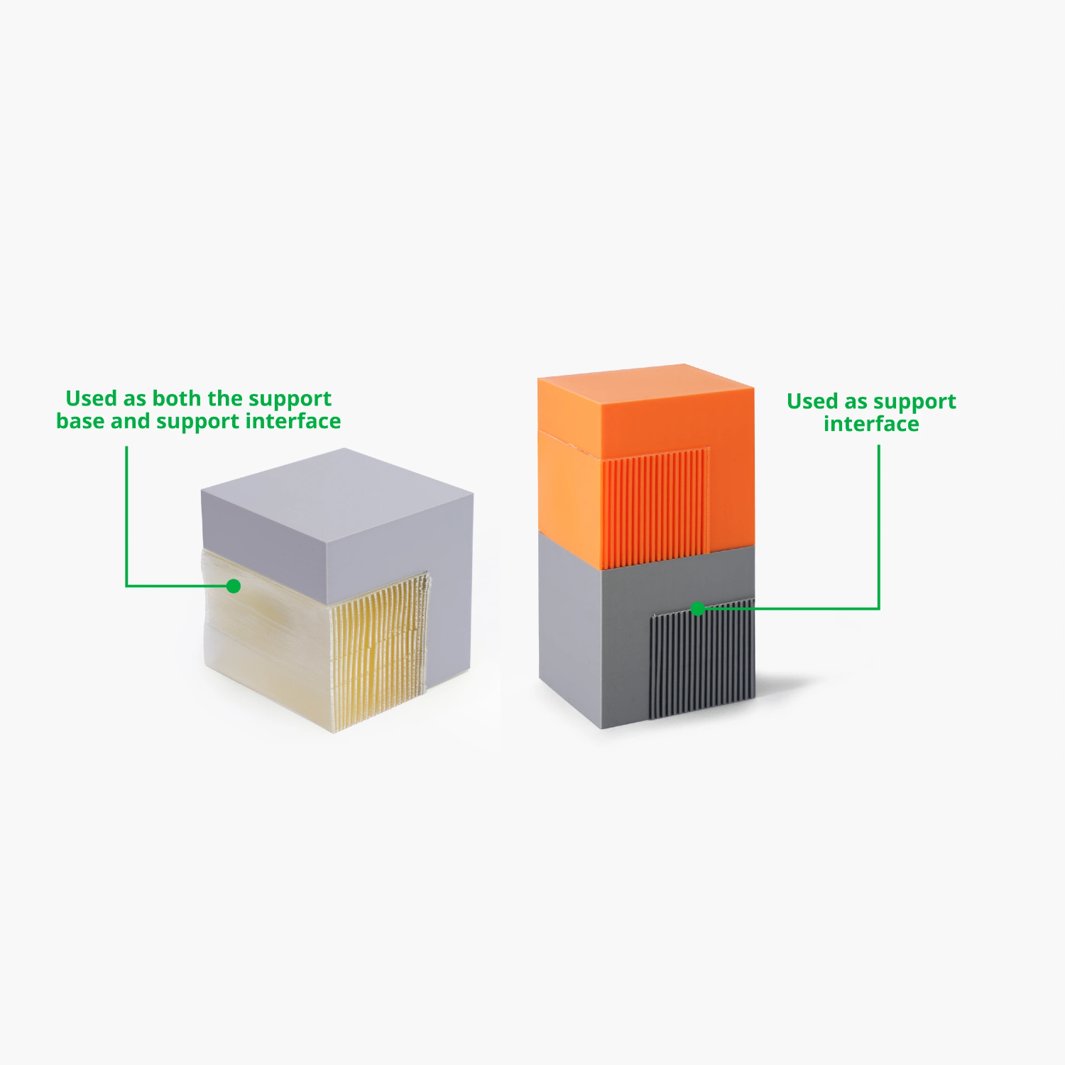 Water-soluble support material can accommodate zero top interface spacing, guaranteeing a seamless bond with the print surface, resulting in precise and smooth support contact surfaces for your prints.