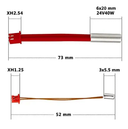 - Calentador: sensor de acero inoxidable de OD6 mm x 20 mm de largo, 24 V 60 W, 73 mm de largo con conector XH2.54