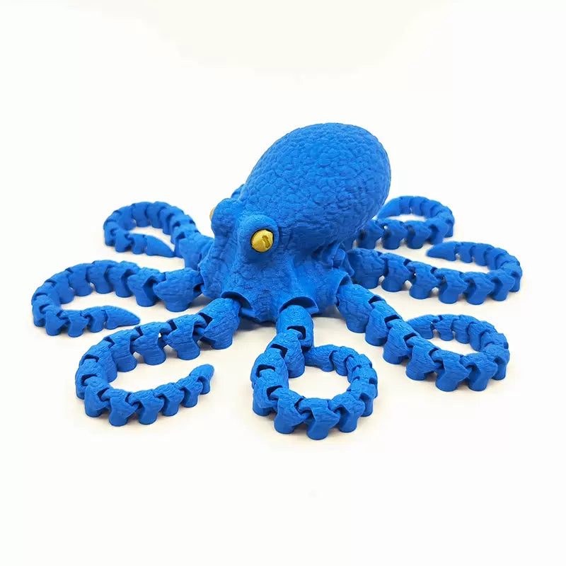 The 3D printed articulated octopus is an interactive and captivating part of your toddler's room. This octopus figurine features movable parts, making it perfect for imaginative play and storytelling.