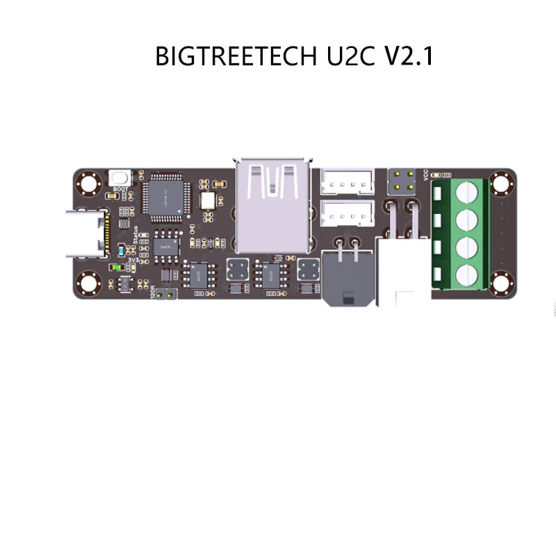 BIGTREETECH U2C is a USB to CAN bus module, which can convert the USB port of Raspberry Pi to the CAN bus, and connect 3D printing motherboard, BIGTREETECH EBB35/36/42 CAN and other products through CAN bus. There are many different forms of CAN interfaces on the board, which are helpful to connect to different boards.CAN bus has many advantages in the field of industrial control, so our company has launched this USB to CAN module. The CAN bus has a long transmission distance, and a large number of nodes can be mounted on it, so the motherboard, EBB, and other expansion boards can be mounted on the same CAN bus at the same time.