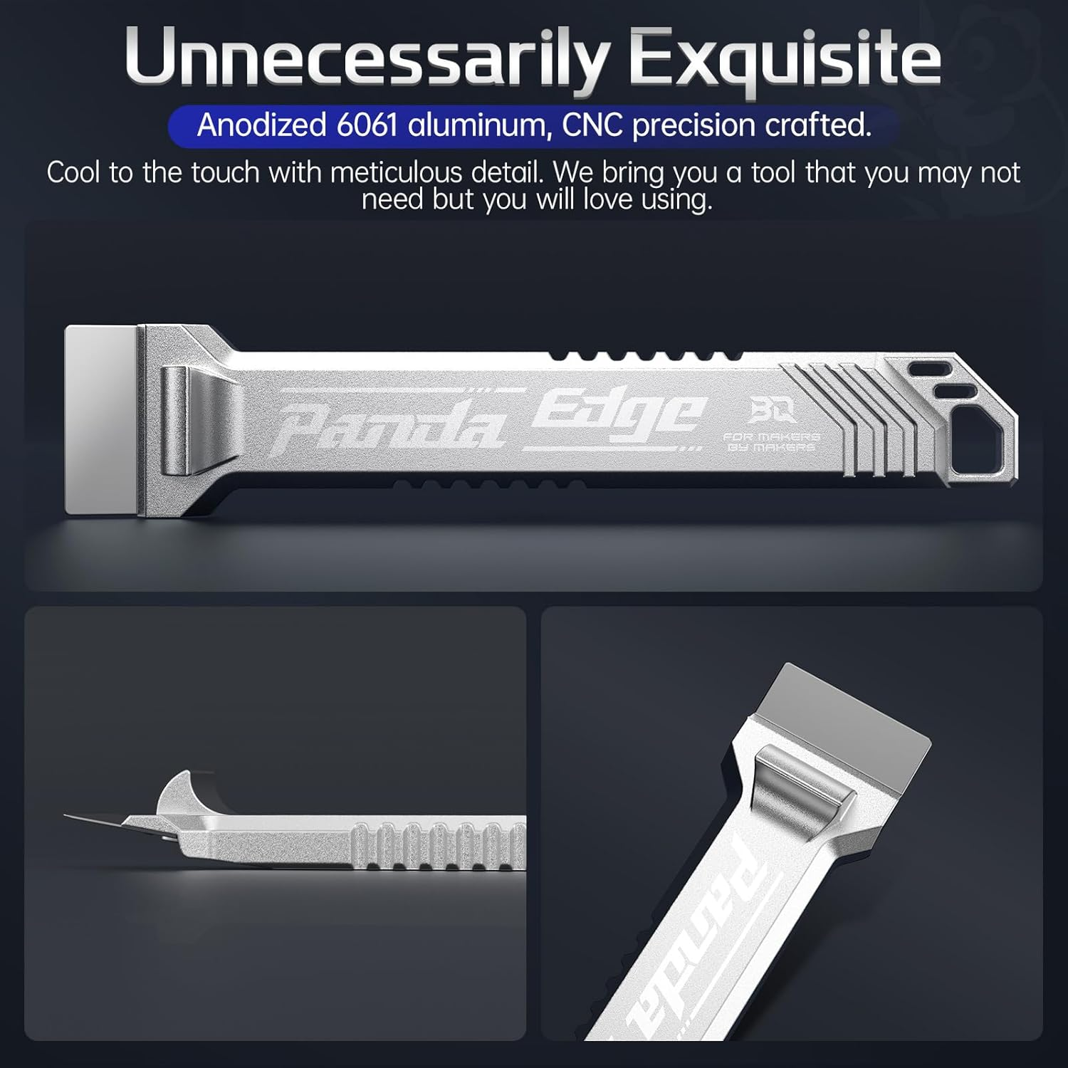 【Well-Made Scraper】The all metal scraper grip of Panda Edge is made of anodized 6061 aluminum. The premium material together with the CNC precision craftsmanship contributes to the exquisite appearance and durability of BIQU Panda Edge spatula kit, and also turns it into a desktop showpiece, making it a combination of utility and art.