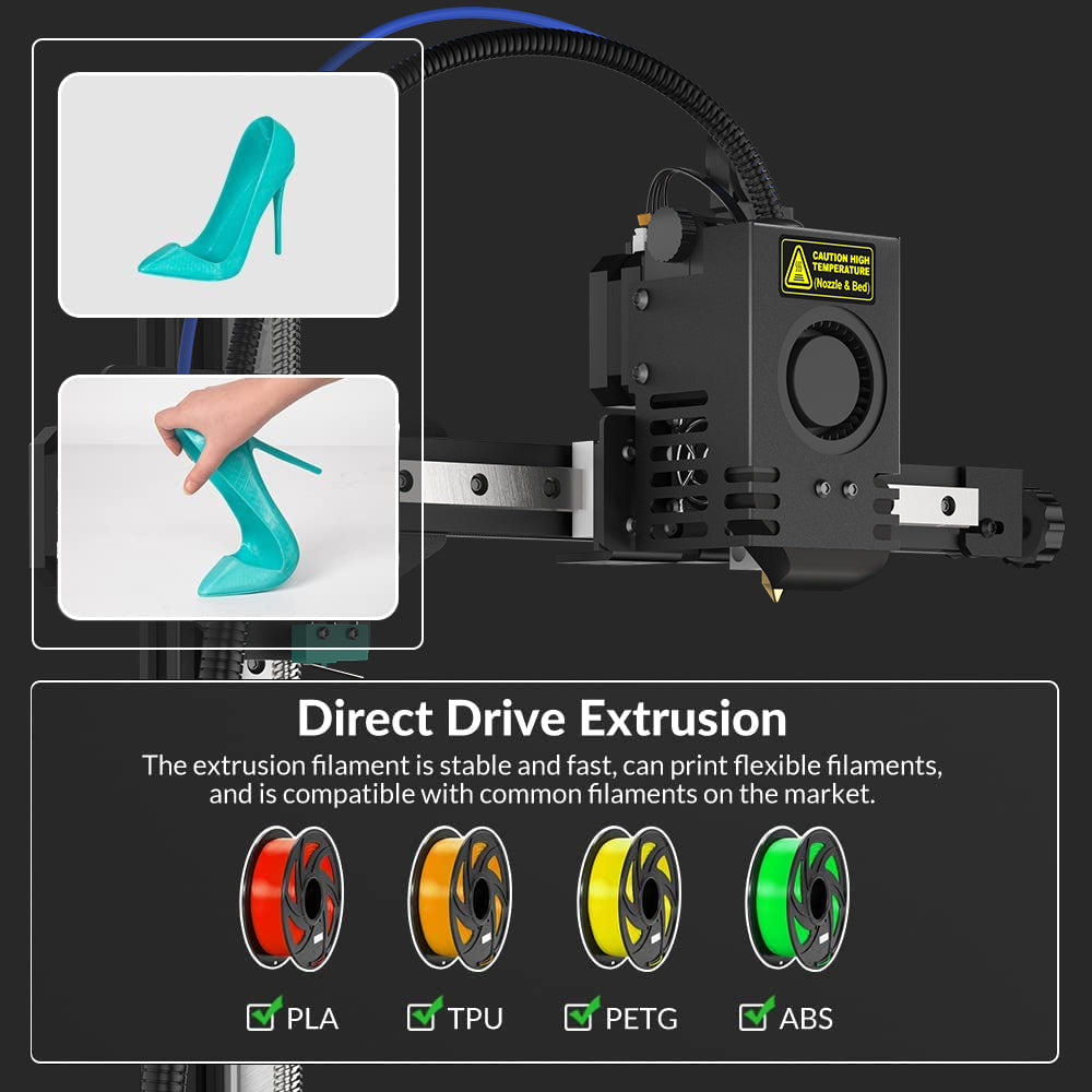 La kingroon KP3S version 3.0 es una impresora de escritorio de tamaño compacto y portátil, su poderoso ectrusor directo ayuda a minimizar la posibilidad de atascos de material en su interior, mismo que le permite imprimir materiales profesionales que van desde el PLA y PETG hasta el ABS, TPU y muchas más, Sus rieles de guía lineal en ambos ejes "X" y "Y" hacen que su precisión supere por mucho a las marcas más vendidas en cuanto a precisión de impresión pues no tiene juego alguno en sus componentes.